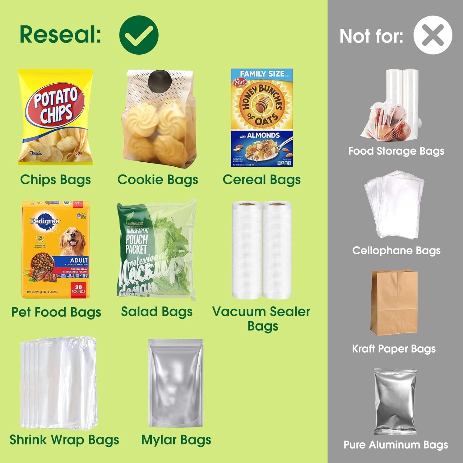 Please Note: This sealer is not suitable for cellophane bags, kraft paper, pure aluminum bags, or ultra-thin plastic such as cling film.