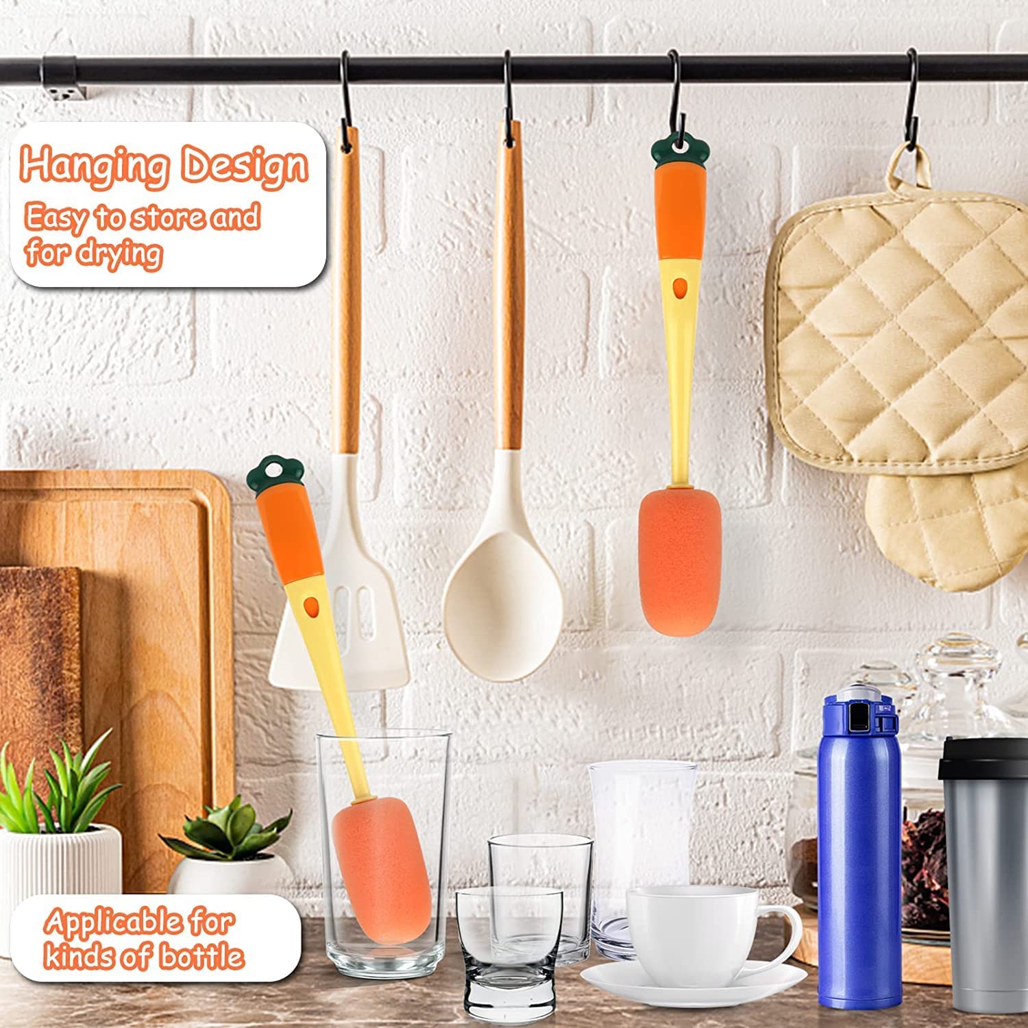 One bottle cleaner brush three use, multi-function long handle cup brush. Triple cleaning mode, for different stains comprehensive and efficient cleaning. Sponge brush head, clean the cup wall cup bottom attached stains. Gap Bristles brush, clean the lid groove hidden dirt. U-shaped soft rim brush cleans a circle of stubborn stains around the rim of the cup. This bottle cleaner with Flexible sponge brush ball for deep cleaning, soft and durable, rich foaming, strong cleaning power. Easily remove milk stains, coffee stains, oil stains, tea stains, not only a baby bottle cleaner. Bottle cleaner for washing narrow neck. U shaped design soft brush head for cleaning around the lid. Soft dense brush, rotating around, easy to operate. Gap bristles brush , clean up dead corners. Deep cleaning trench, remove hidden dirt, care for Nipple.