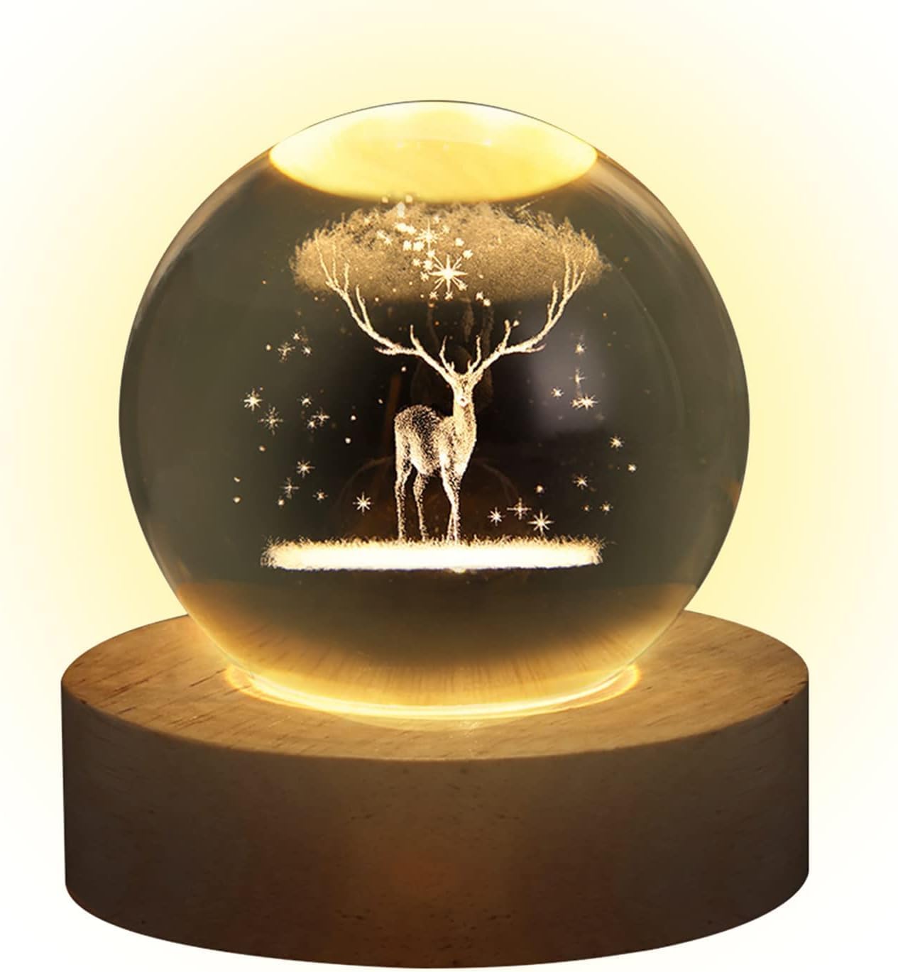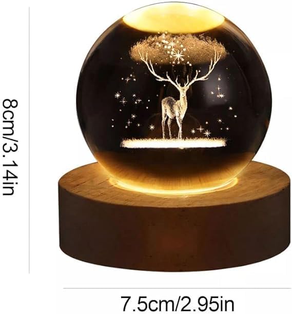 Reindeer Crystal Ball Night Lights Made Of Crystal, Interior Images Are Carved By Advanced 3D Laser Engraving Technology. Glow Lamp with Removable Balls Is Reindeer And Even After a Lifetime Of Use, Never Lose Their Original Shine. The night light lamp is made of high-quality crystal materials, and the interior images are carved by advanced 3D laser engraving technology, it's vivid and clear, great as a unique gift for girls or boys. And the unique design will decorate the bedroom with warmth and create an ideal living environment for your family. It is also an exquisite desktop decoration, a considerate gift for your friends, boy friend, girl friend, family, etc. You can also decorate the bedroom, living room, dining room, and outdoor. Experience versatility with the dimmable USB cord featuring warm white LED lights, making it an ideal choice for creating a cozy ambiance in the bedroom, living room, or as a decorative accent for gaming tables. This Enchanting elk Crystal Lamp is Not Just a Beautiful Decoration, But Also a Practical Gift Idea for Various Occasions. Its Mesmerizing Glow Adds Warmth and Tranquility to any Room, Creating a Soothing Atmosphere That Helps You Unwind After a Long Day. Surprise Your Loved Ones With This Unique Piece that Combines Elegance and Functionality in One. This elk crystal ball nightlight is a great gift for women, men, kids, friends and families at any festival.