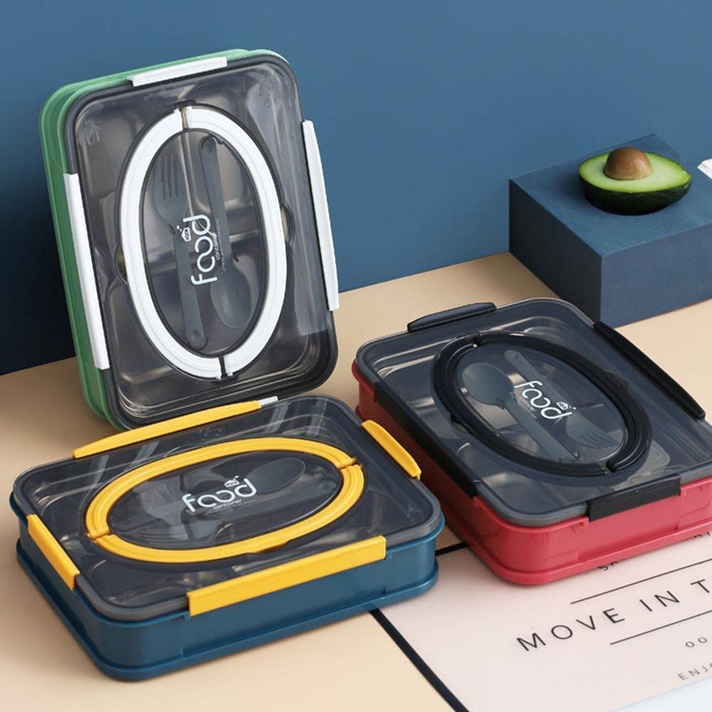Lunch is one of the most exciting parts of the day for preschool and kindergarten-aged children. They get to eat their favourite snacks, talk with their friends, and take a break from all the classroom learning. But it’s also a time when you get to provide them with healthy options through a variety of foods that can help them grow, stay focused, and be happy. This 4-compartment lunch box provides you with space to create a well-balanced meal, while still giving them all the fun and enjoyment they need to make school a positive experience. No More Fast Food, Enjoy Healthy Meal every day! Only Inner Food Don't Leak To The Outer Side. Please note, it is NOT leakproof between the 4 compartments, so please DO NOT use it for saucy or liquid food. 4 perfectly portioned compartments encourage you to pack more variety in your lunch, which makes your lunch more nutritious and balanced. Perfect for food prep, storage, organisation, and carry, these lunch boxes hold pasta, steak, sandwiches, vegetables, nuts, fruit, and other snacks. Enjoy delicious food anytime, anywhere. Great for kids/dieting adults who need a variety of nutrients. Flip buckle design. With built-in food-grade spoons and forks, mothers no longer have to worry about forgetting to bring utensils, which will affect their children's meal time.