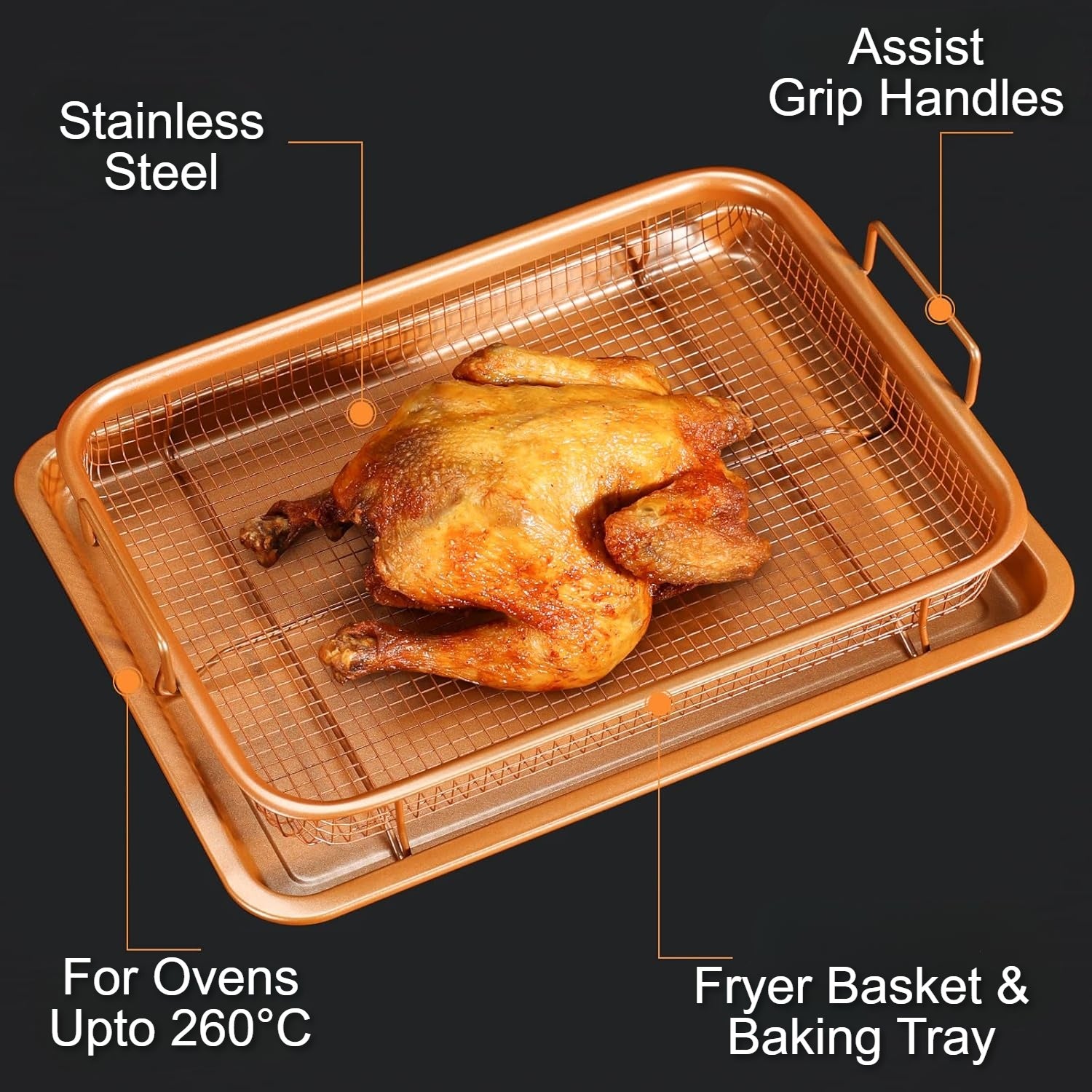 Whether you're roasting, frying, or baking, this air fry basket and tray set is your ultimate kitchen companion for healthy, hassle-free cooking.