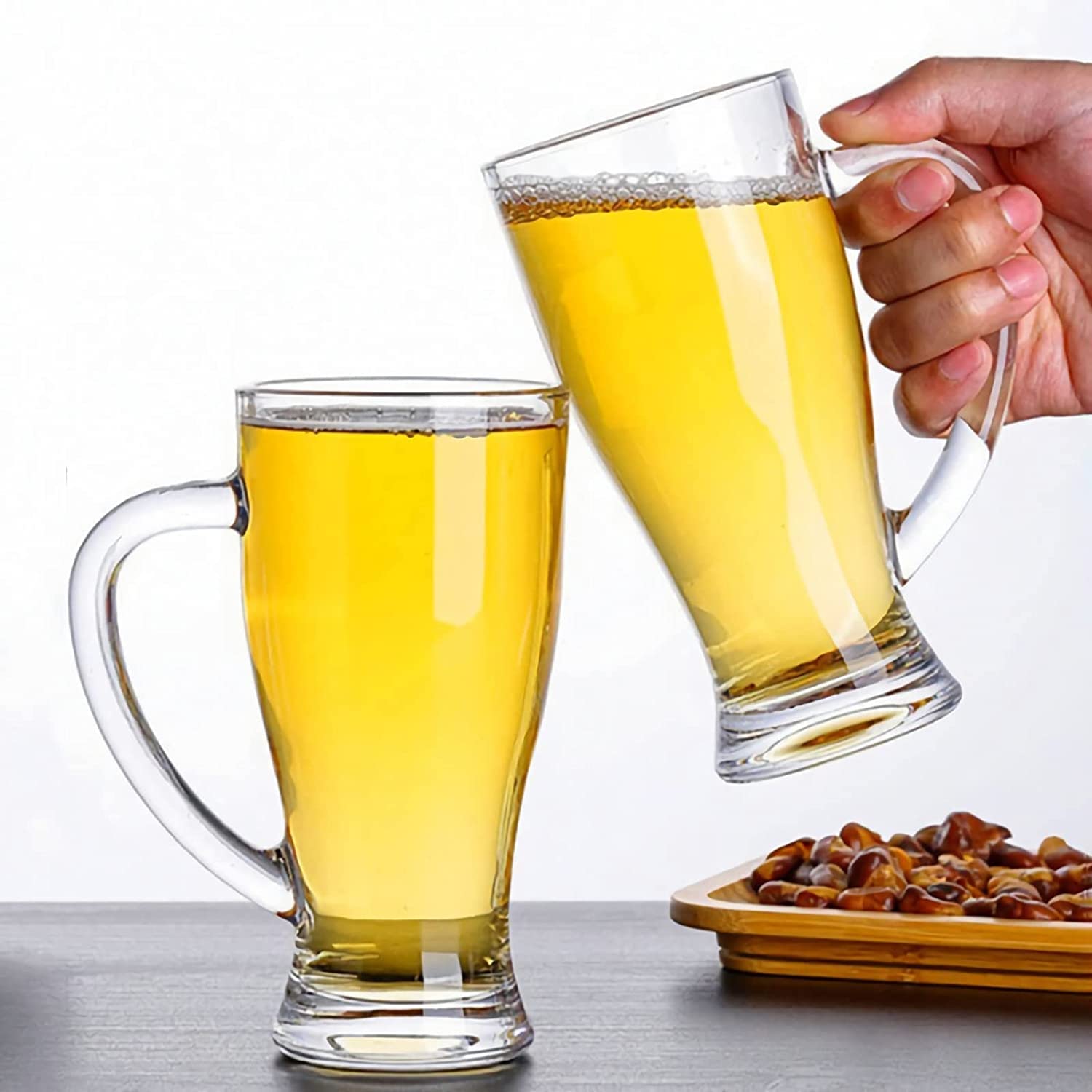 Excellent for all kinds of beer, it's also great for coke, cola, cocktail, juice, milk, water, tea and coffee, drinks, milkshake, lemonade, breakfast drinks, suit for parties and any occasions like housewarmings, Christmas, festivals, birthday, wedding and more! It can be a great gift to beer lovers and house lovers too! Clear glass beer mug with a smooth finish that gives it a crystal and beautiful look. It is wonderful glassware for you and your family to drink coffee or tea every morning and evening. A suitable mug can not only bring convenience to us but also bring a good mood. It can be used on many occasions. You can put it in your home, coffee shop, restaurant, etc.