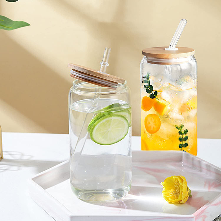 Our Reusable drinking glass set for parties to enjoy your favorite drink. Package includes 6 drinking glasses with silicone rubber sealing ring bamboo lid, and 6 glass straws. The can shaped glasses are made of borosilicate glass and are BPA-free. The glass measures H 13.8 cm x D 7.5 cm and can hold up to 540 ml and the glass straw measures 18 cm. Compared with ordinary glass cups, our beer glass cups can withstand sudden changes in the temperature difference between -68°F to 212°F. Can be used to store warm and cold beverages and is dishwasher safe. These glasses with straw and lid are suitable for different drinks whether cold or hot. It is used to serve tea, milk, bubble tea,soda, water, iced coffee, smoothie, fruit juice, etc. DIY glass tumbler to paint any design on the blank space suitable as the customized gift for your friends, family or as corporate gifts. It is widely used in kitchen, breweries, cafes, bars and restaurants.