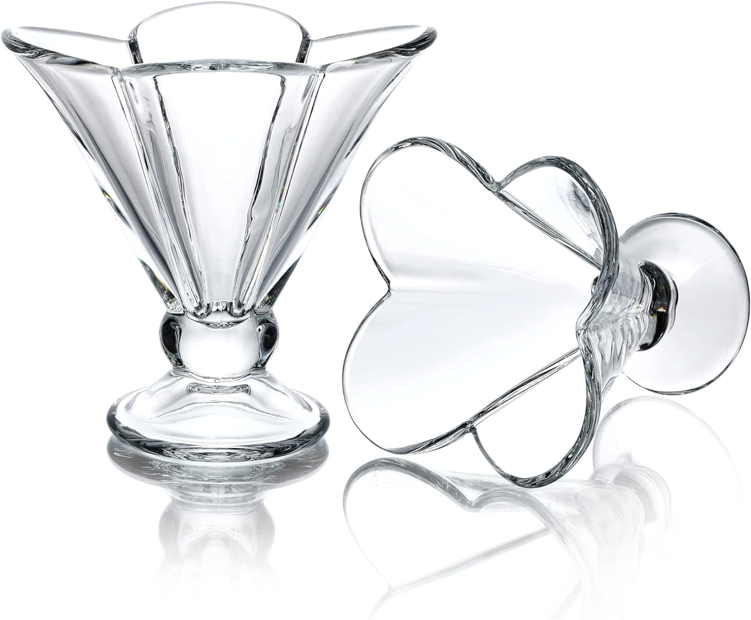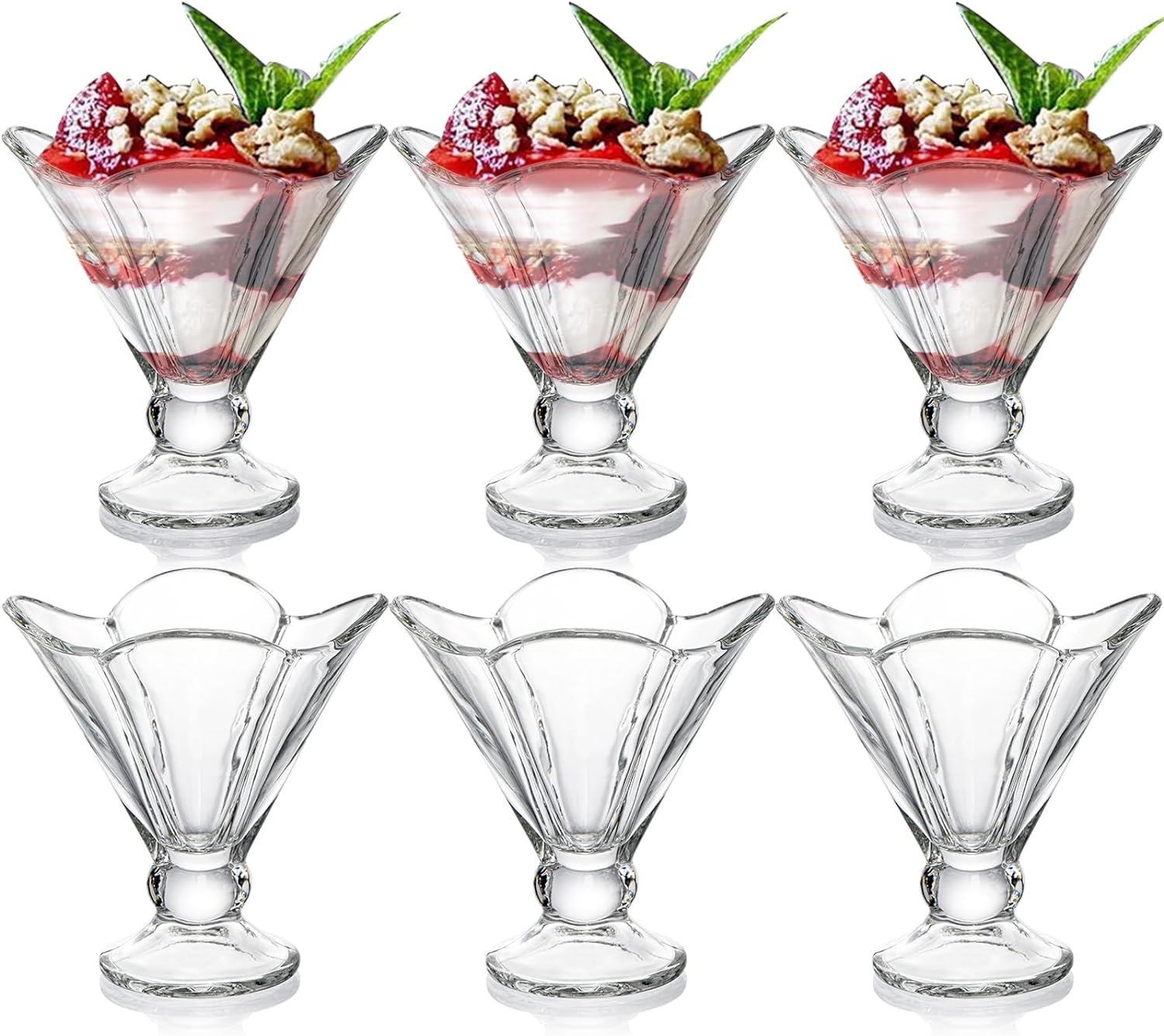 These ice cream cups feature elegant design for a formal look that's ideal at sit-down dinners, afternoon luncheons, and family celebrations. They can bring the beauty of clear glass to your table scape for your dining pleasure and add a decorative touch to dessert or snack time. They come in a 6-piece set and each can hold up to 190ml of ice cream. These cups are safe to put in the dishwasher. The elegant design helps them look stylish on your table. They're ideal for serving guests and family.