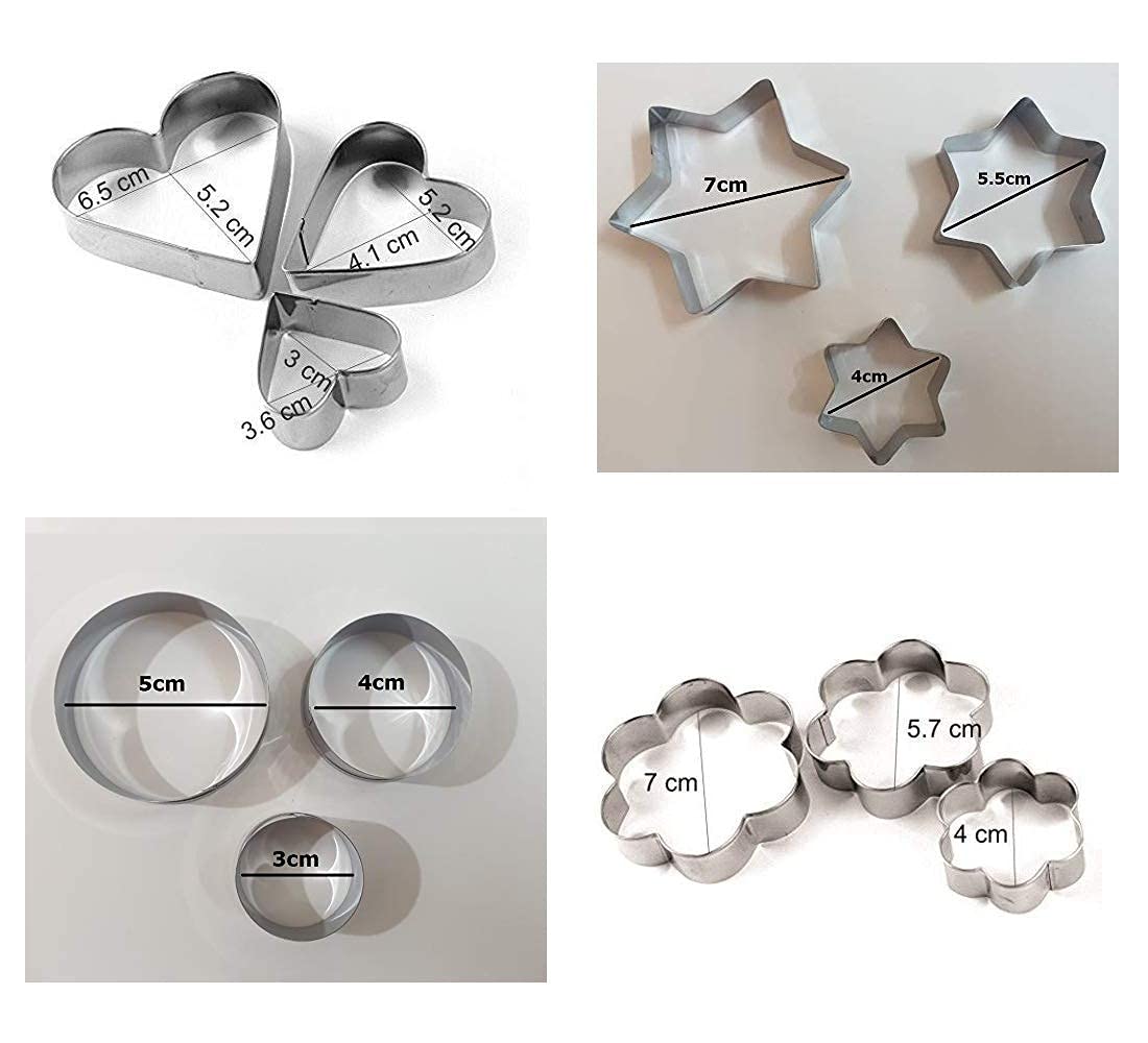 Elevate your baking game with our Stainless Steel Cookie Cutter Set! This comprehensive set includes 12 pieces, featuring 4 delightful shapes and 3 versatile sizes for each shape. From classic hearts to celestial stars, these cutters are perfect for adding a touch of charm to your cookies for any occasion. Crafted from high-quality stainless steel, these cookie cutters are durable, rust-resistant, and easy to clean, making them a reliable companion for all your baking adventures. Their smooth, polished finish ensures effortless dough release and consistently sharp edges for perfectly shaped cookies every time. Whether you're a seasoned baker or just starting out, this set is a must-have addition to your kitchen. Impress friends and family with beautifully shaped cookies that taste as good as they look. Get your Stainless Steel Cookie Cutter Set today and unleash your creativity in the kitchen!