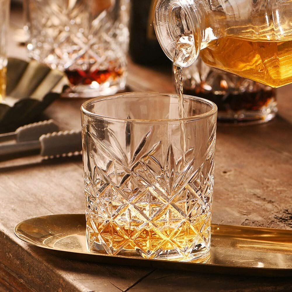 Whiskey glass is made with thick soda lime material. The durable and toughened crystal glass will keep the drink at the perfect temperature for a longer time, be it cold, or room temperature, just the way you like it. Refrigerator-safe and freezer-friendly, this old-fashioned whiskey glass comes with a W7.5cm/2.95" x H9cm/3.54", and holds up to 300ml. Feel the freshness of the inscribed designs while experiencing every sip of your Whiskey or Scotch. It’s an impressive way to serve both soft and hard drinks. The perfectly rounded bourbon glass with a wide mouth is ideal to hold and pour your drink and add ice with ease. When you have such a beautiful set of premium whiskey glasses, every day is a special occasion. Best served on weddings, house parties, engagement parties, bachelor parties, cocktail party or on any occasion you wish to enjoy your favorite drinks. This crystal glass is suitable for scotch, bourbon, liquor, cocktail/mocktail and cold drinks. These old-fashioned rock glasses are lead-free and 100% safe. It eliminates the risk of leaching harmful chemicals and non-toxic substances into your drink. So, make your every sip safe, memorable, and refreshing. It’s a great gift for whisky lovers and everyone who wants to drink in style. It’s safe, lead-free and an excellent value add a gift for any occasion. Ideal for both men & women and a classy gift for birthdays, house parties, get-togethers, engagement, wedding anniversaries, bachelor parties.