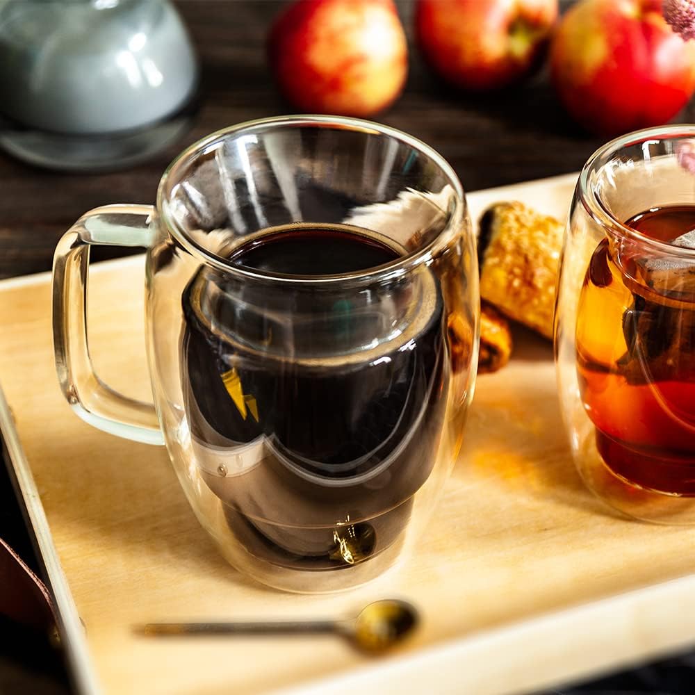 Elevate your morning cup of coffee or tea from the same old boring routine to a luxurious experience. Made of heat and condensation-resistant borosilicate glass, which is stronger and more durable than common glass that gives a smooth finish and a crystal clear look, Keeps your liquid hot while keeping your hands cool. Our coffee mugs are a Beautiful addition to any cafe, restaurant, pub and definitely to your own home. Can be used for Cappucinno, Macchiato, Latte, Coffee cups, Tea, smoothie and juice, work place and home where classic design and elegance make an impressive statement.