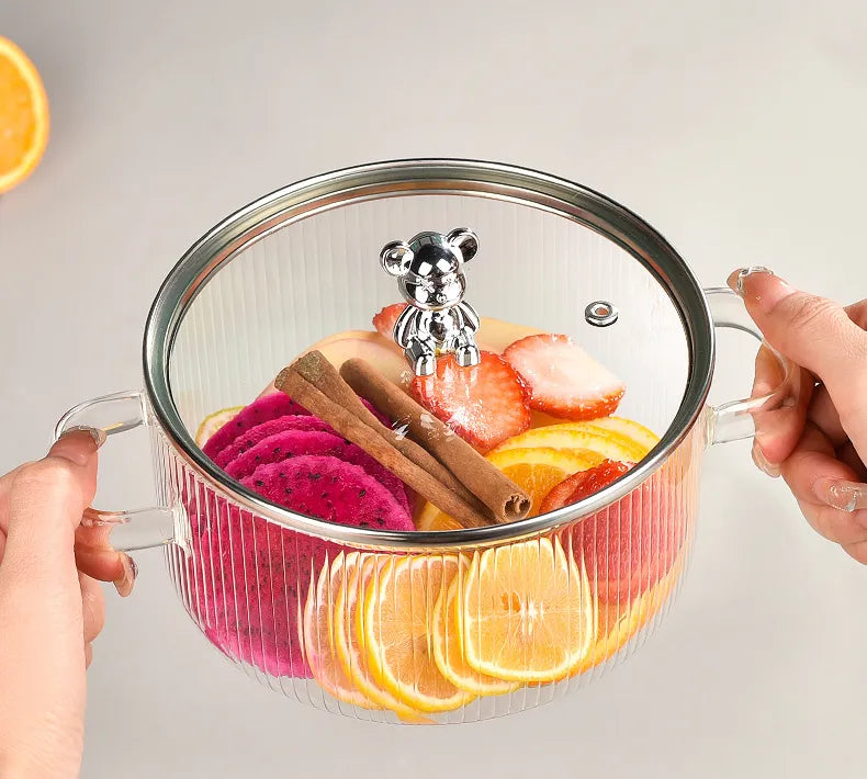 Expertly crafted using borosilicate glass, this 1600ml casserole dish with lid is perfect for cooking, serving, and storing food. Its fluted design not only adds a touch of elegance to any table, but also provides even heat distribution for superior cooking results. Say goodbye to messy spills with the convenient lid. The revolutionary glass construction makes these casseroles safe for use in the oven, microwave, refrigerator. The clear sides allow you to monitor your baking, serve in style, and check what's inside when stored. Ideal for serving and storing a variety of foods, such as curries, rice, soups, salads, milk, curd, and more - keeping your food fresh and delicious. Before first use, simply wash with soapy water, rinse, and dry. After each use, a quick scrub will easily remove grease and oil. For even easier cleanup, both the bowl and lid are dishwasher-safe, but handwash recommended.
