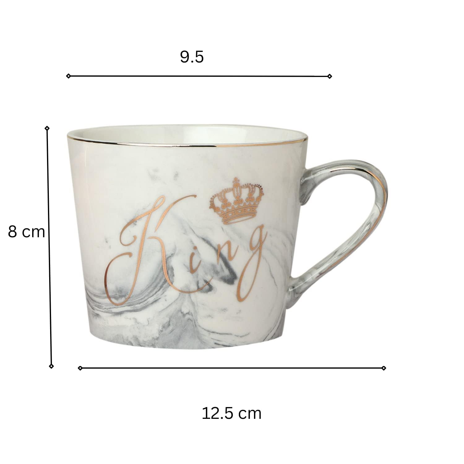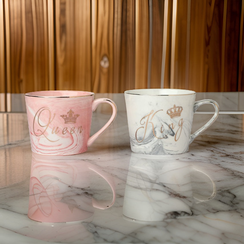 This high-quality mug features a regal design, with a king and queen emblem, perfect for royalty and couples alike. Made from durable materials, this mug is sturdy and can hold your favourite beverages. The perfect gift for any royal enthusiast.