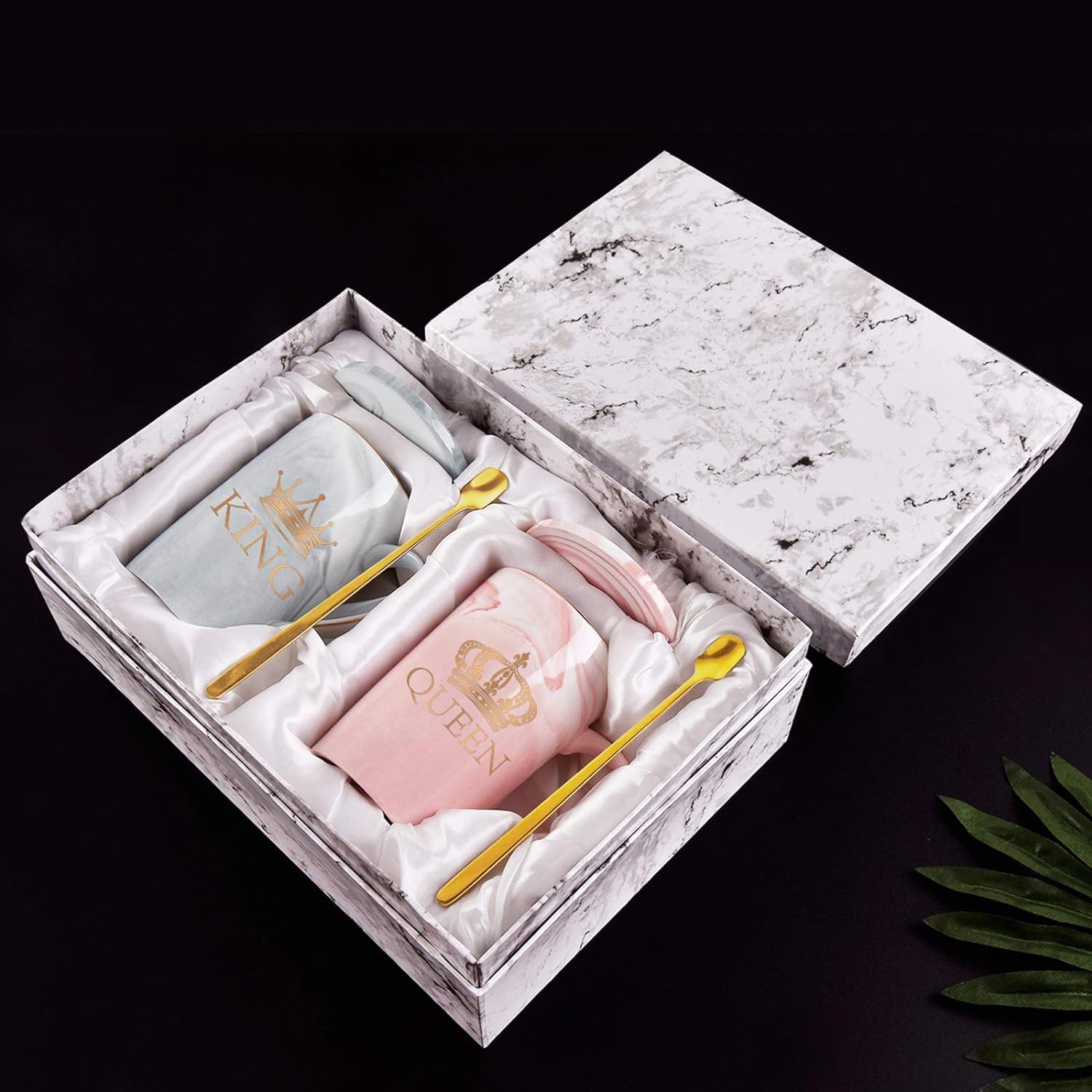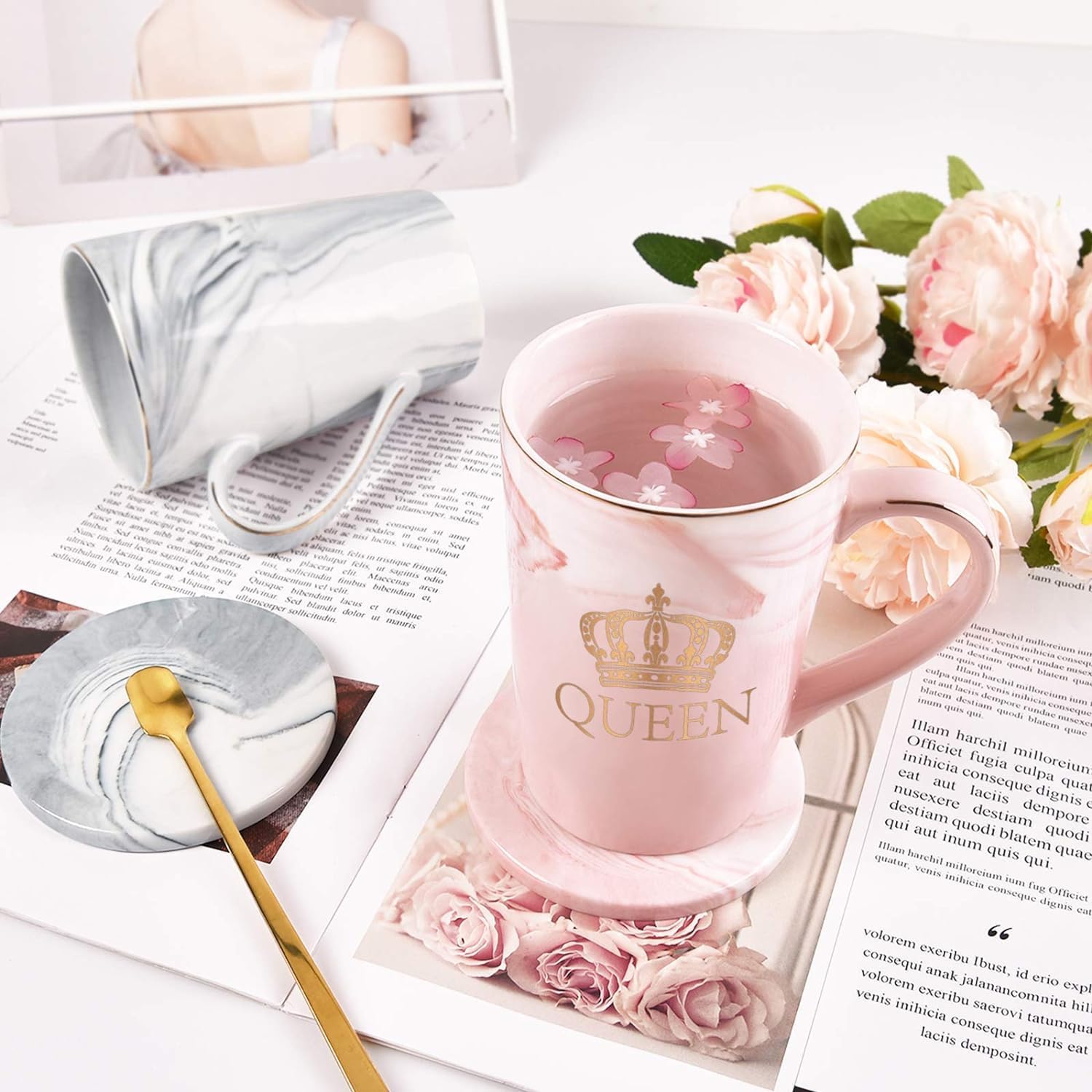 Elevate your tea or coffee experience with our Ceramic King & Queen Mug. This King and Queen mugs are absolutely a meaningful gift for Lovers, couples, new parents, new pregnancy, new dad and new mom, mom to be, dad to be, friends, parents, Brides, husband, wife, girlfriend. It specially fit to Valentine's Day, Upcoming Wedding, Engagement, Christmas, Anniversary, Birthday, Baby Shower, housewarming. The set includes a lid & spoon, making it perfect for sipping in style. Crafted with the highest quality ceramic, this mug is fit for royalty. Cheers to a more luxurious morning routine!