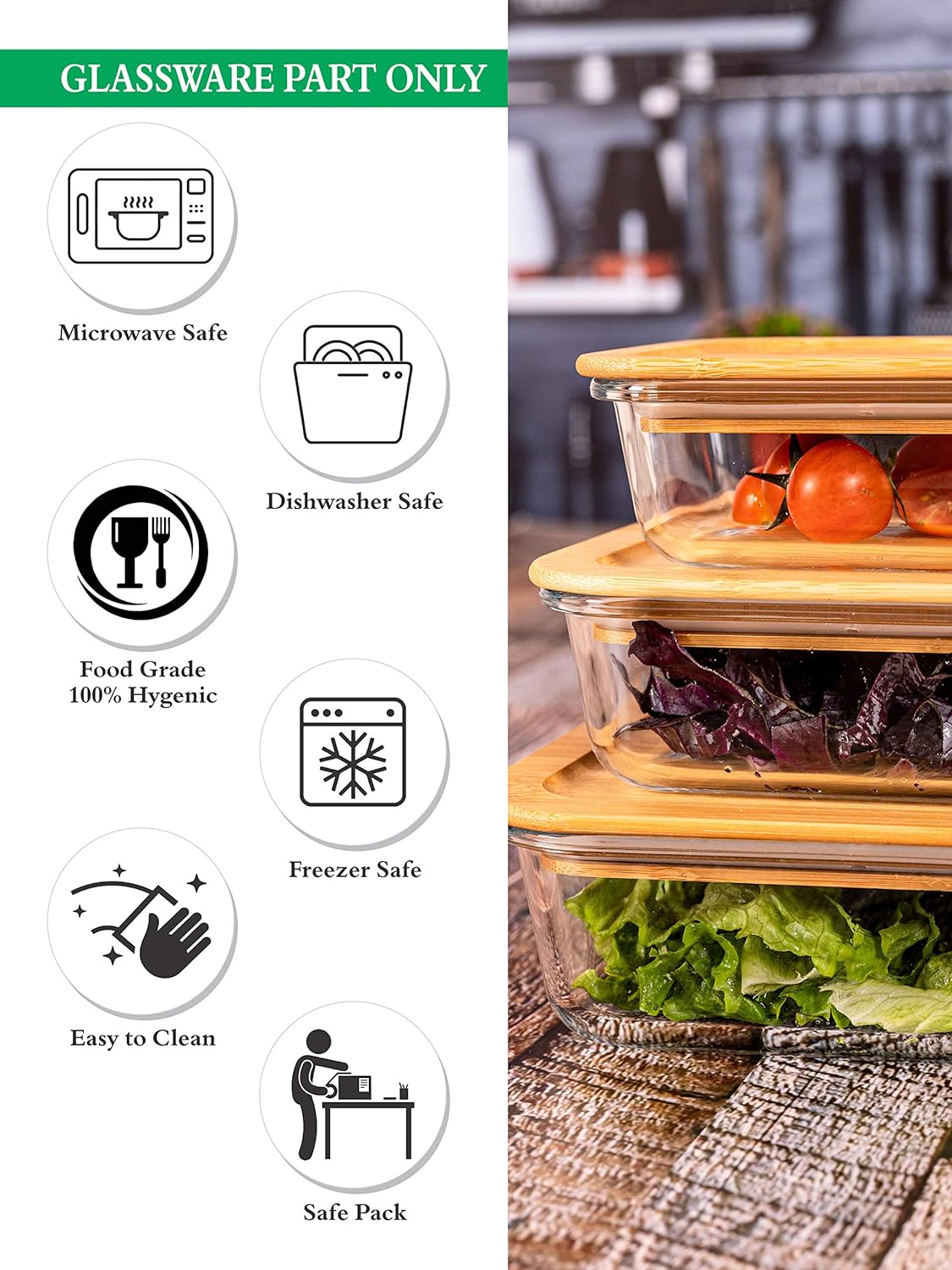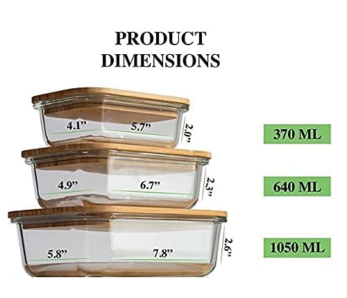 Made of borosilicate, the strongest glass available, our kitchen ware can withstand temperatures of up to 520°F. They are freezer, microwave, oven, and dishwasher-safe (Not the lids). Our containers are absolutely plastic-free. We make sure all the materials we use are kind to nature--from the box down to the silicone seal that keeps our lids airtight! Get 3 perfectly convenient sizes (370ml, 640ml, and 1040ml). The beautiful tight-fitting bamboo lids also function as cutting boards, while the leakproof cover ensures no spills. No need to worry about food, odor, or irritants seeping into these nonporous glass containers. Designed to safeguard your health, they are non-toxic and BPA-free.