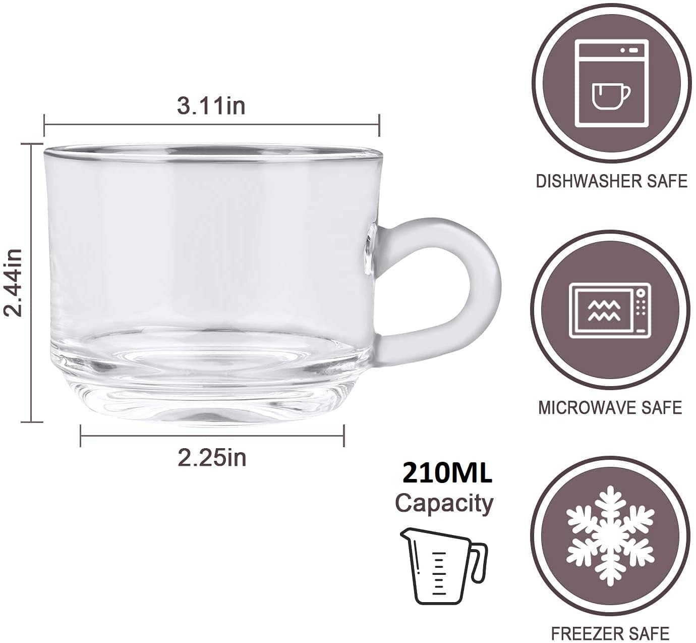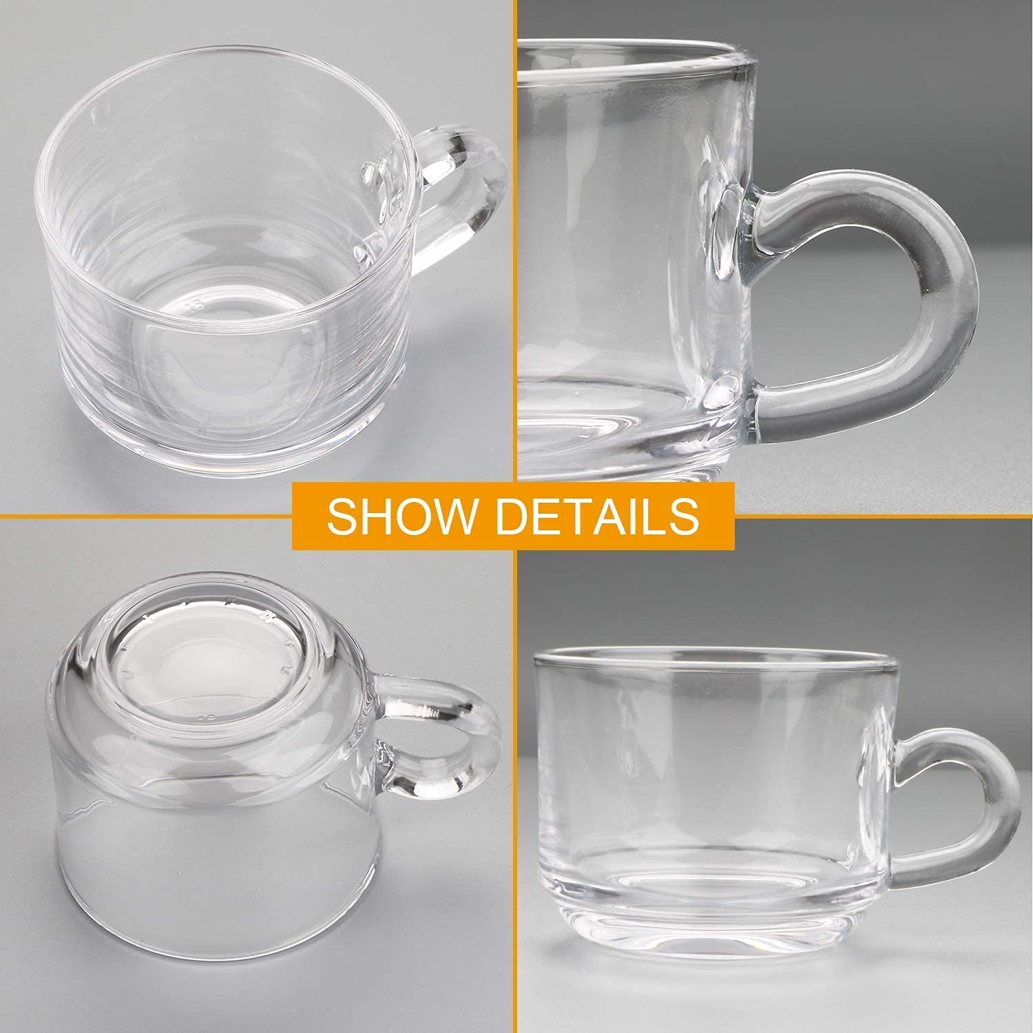 This tea cup set of 6 provides a versatile option for serving blue tea, black coffee, cappuccinos, hot chocolate, green tea milk, and more. The transparent glass cup design makes each drink visually appealing. As a coffee cup, this set of glass coffee mugs offers an elegant way to enjoy your morning or evening brew. The premium quality glass allows you to enjoy the rich colors of your black coffee or cappuccinos. Our Roma Round tea set includes 6 tea cups, perfect for entertaining guests or hosting tea parties. The cup set is ideal for serving blue tea, green tea milk, or any of your favorite beverages. Featuring a transparent design, this glass cup set showcases the rich colors and textures of your beverages. Whether you're serving coffee, tea, or hot chocolate, each drink is displayed beautifully. Each coffee cup in this set is designed with a transparent, premium glass that adds a touch of elegance to your drinkware collection. Beautiful addition to any cafe, restaurant, pub and definitely to your own home. Can be used for Capucinno cups, Lungo cups, Macchiato, Latte, Espresso cups, Demitasse cups, Tea, smoothie and juice.