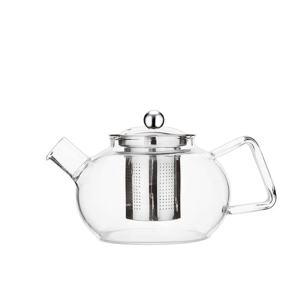 Experience effortless brewing with the Round Borosilicate Glass Kettle, a premium 1000ml teapot designed for both convenience and elegance. Crafted from high heat-resistant borosilicate glass, this teapot is 100% stovetop safe and microwave-friendly, allowing you to brew tea directly without the need for separate boiling. Featuring a wide spout for smooth pouring and a stainless steel mesh strainer for precise filtration, it ensures a perfect, sediment-free tea experience. Its minimalist design makes it easy to use, clean, and store—whether on the stove, in the microwave, or even in the fridge for cold brewing. With a generous 1000ml capacity, it serves 4 to 6 cups, making it ideal for gatherings, tea parties, or daily relaxation. Dishwasher-safe and easy to maintain, this teapot combines practicality with sophistication, making it a perfect gift for tea lovers on any occasion. Elevate your tea-drinking ritual with this stylish and functional glass kettle.