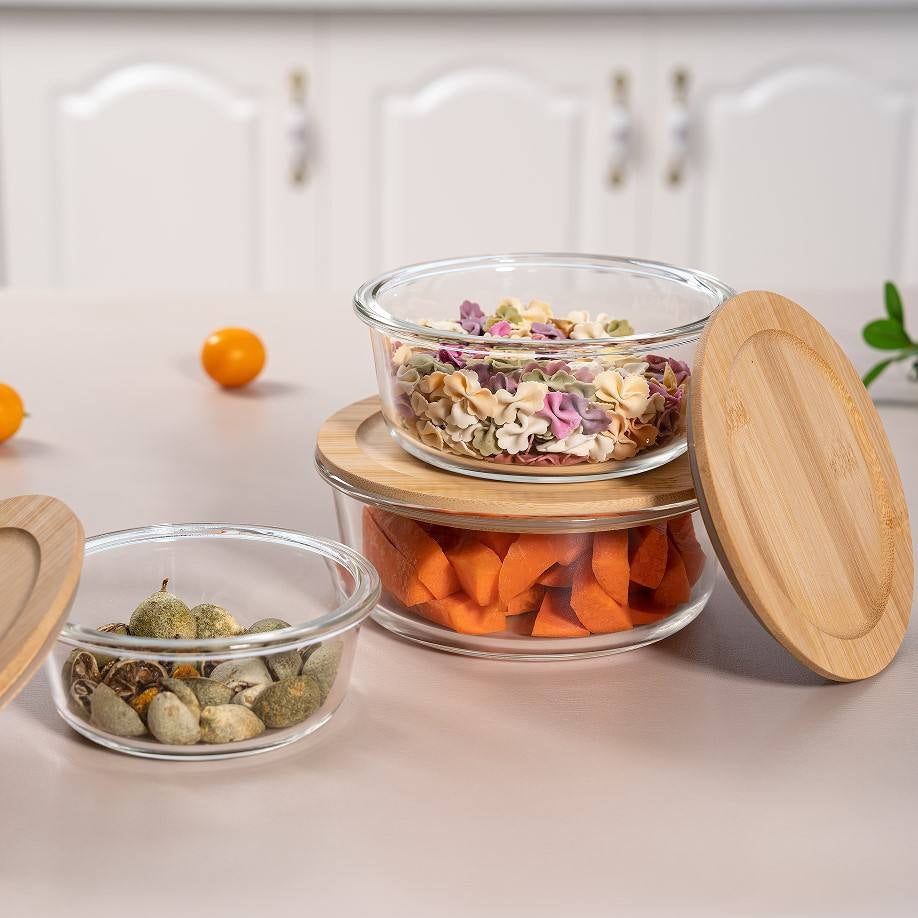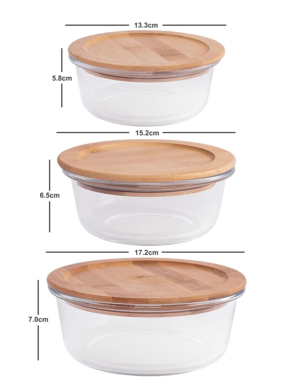 Enhance your kitchen organization with our Round Glass Food Storage Containers with Airtight Wooden Lid - Set of 3. Crafted with precision and functionality in mind, this set offers a stylish and practical solution for storing your favourite foods. Each container in this set is made from high-quality transparent glass, allowing you to easily identify the contents inside. The round shape maximizes storage space and makes it easy to stack these containers in your pantry or refrigerator. The airtight wooden lids provide a secure seal, keeping your food fresh and preventing leaks or spills. Made from durable wood, these lids add a touch of warmth and elegance to your kitchen decor. With three different sizes included - 370ml, 640ml, and 1040ml - you'll have the perfect container for all your storage needs. Use them to store leftovers, meal prep ingredients, snacks, and more. Not only are these glass containers practical, but they're also safe for use in the microwave, oven, freezer, and dishwasher, making them versatile and easy to clean. Upgrade your food storage game with our Round Glass Food Storage Containers with Airtight Wooden Lid - Set of 3. Experience the perfect combination of style, convenience, and functionality in your kitchen.