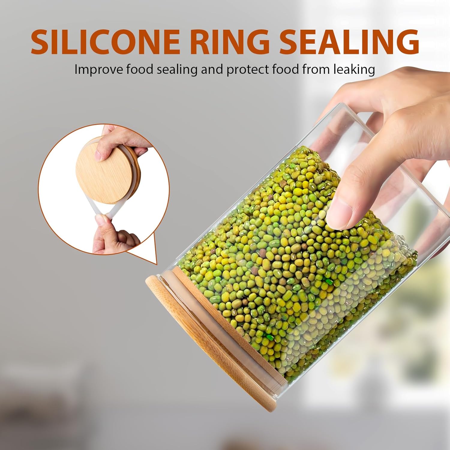 Elevate your kitchen organization with this glass jars, meticulously crafted from food-grade high borosilicate glass. Savor prolonged freshness with each jar's airtight design and secure lid. This prevents dust and moisture, preserving your items quality. The bamboo lids add an elegant touch to your storage solutions, enhancing both style and functionality. Enjoy effortless maintenance with our glass storage canisters. The glass jar body is dishwasher safe, streamlining the cleaning process. For the bamboo lid, a simple hand wash and air-dry are recommended. Keep your kitchen essentials clean and fresh without any hassle. The transparency of these glass containers offers a clear view of your stored items. The wide mouth not only enhances accessibility but also makes it convenient to scoop or pour contents, making your kitchen routine a seamless experience. Beyond the kitchen, these storage jars offer versatile storage solutions suitable for home and office settings alike. Whether you're organizing your pantry or enhancing your office decor, these glass jars combines functionality with style, providing a chic and practical solution for all your storage needs.