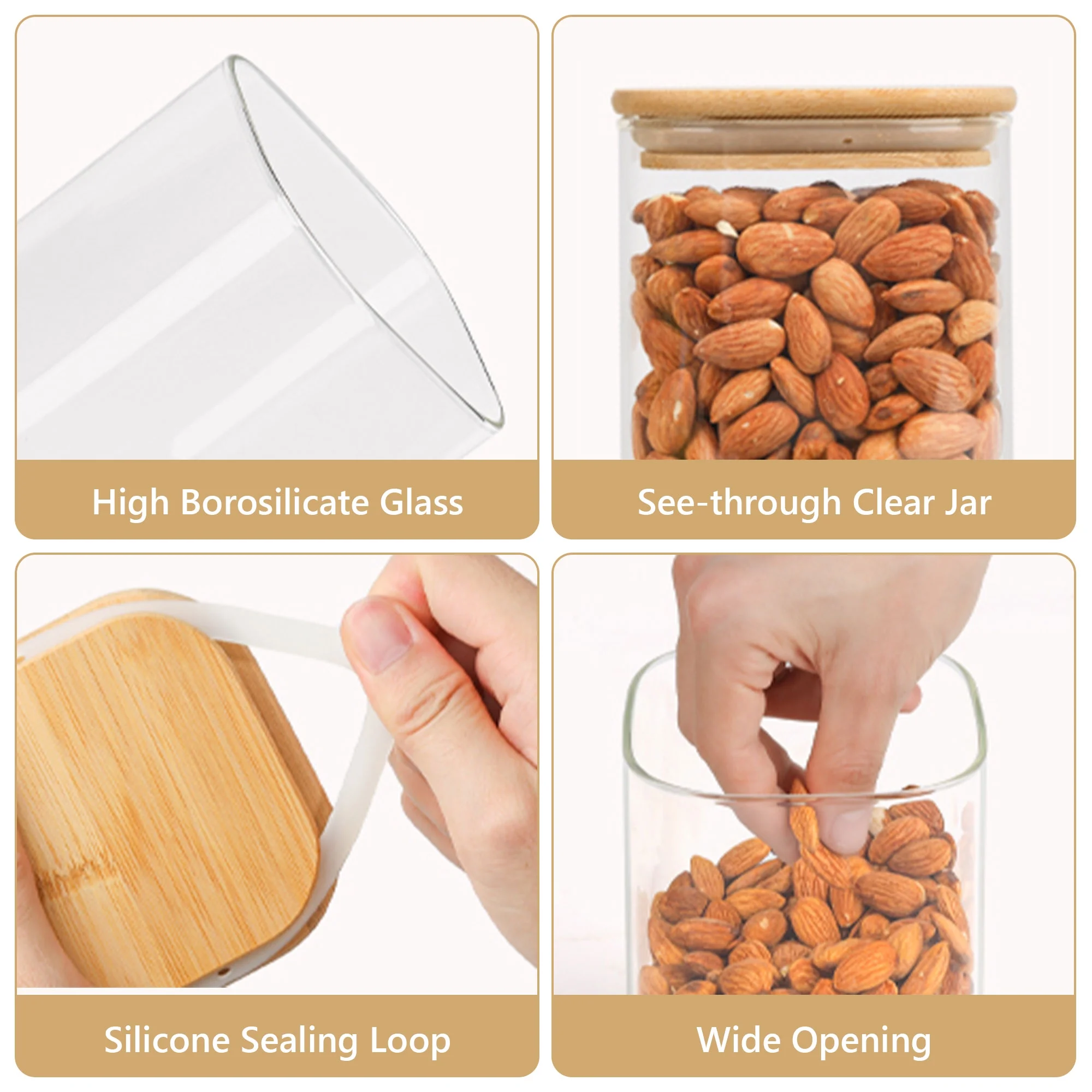Premium Strong High Quality Glass Jars Set With wooden bamboo Lids, Which Is Made Of The Highest Quality Materials For Maximum Durability And Convenience. BPA Free 100% Food Safe Grade Glass And Dishwasher Safe. Wood Lids Are Lab Certified Corrosion-Resistant Material. Use For Baby Food, Jam Or Jelly, Spices, Honey, Cosmetics Or Homemade Candles. Try Filling With Bath Salts, Body Butter, Candy, Nuts, Buttons, Beads, Lotions, Essential Oils And More. Use The Wide Mouth wood lid Jars To Make Unique Creations And Gifts. You Can Paint And Decorate The Classic Canning Jars However You Want And Use Them To Create Party Lights. Give Your Loved Ones Homemade Cookies In These Beautiful Jelly Jars As A Unique And Personal Gift. Wide Mouth Glass Jars Have An Elegant Design And The Transparent Glass Can Clearly Distinguish What Is Inside. Each Lid Is Expertly Designed With Ease Of Use And Storage Security In Mind; The Included Lids Seal Tightly To Prevent Leaks And Preserve Foods While Still Being Easy To Open And Close. The crystal glass allows you to see what is inside and easily monitor whether your food has run out. Glass storage containers can be placed in the dishwasher for cleaning (remove the bamboo cover), while wooden lids can be wiped with a cloth, hand washes recommended.