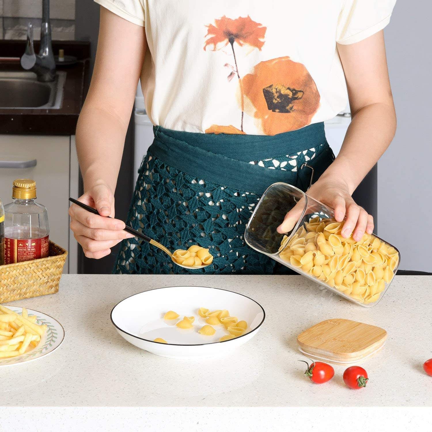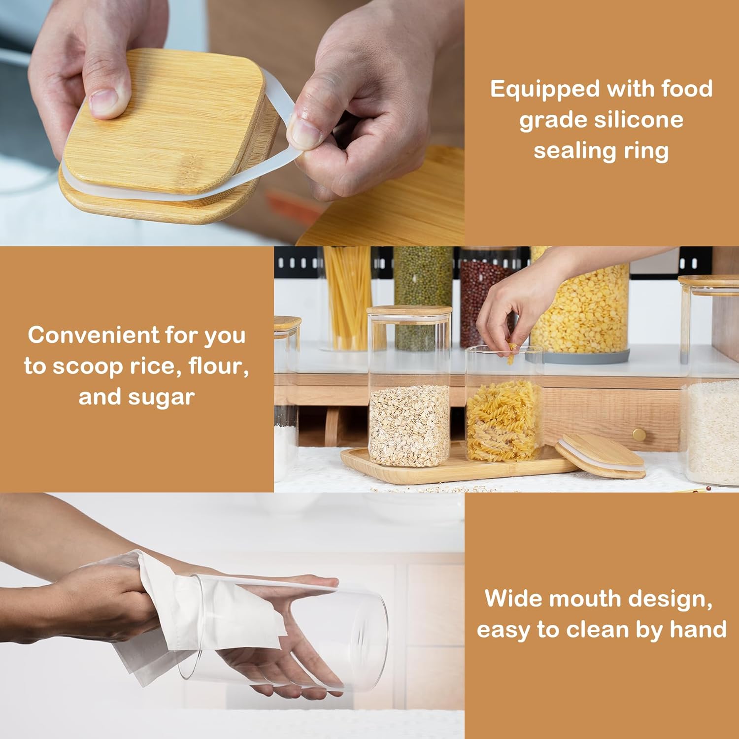 Equipped with natural bamboo lids and silicone seals, these airtight canisters provide a secure, moisture-resistant environment to keep food fresh for longer. Their versatility extends beyond the kitchen, making them ideal for storing pet food, laundry beads, bathroom essentials like cotton balls, and more.