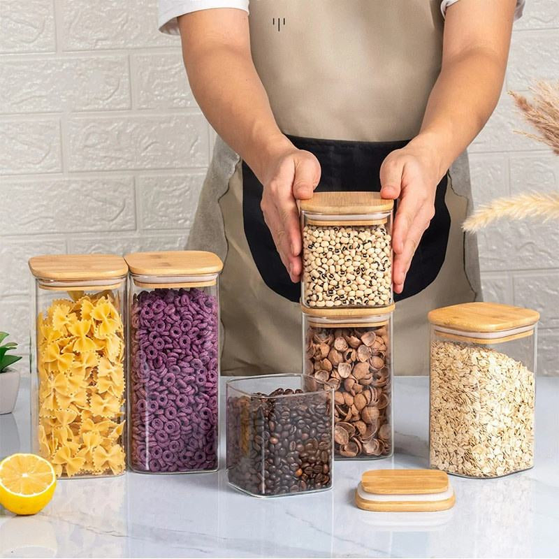 Upgrade your kitchen organization with our food-grade borosilicate glass storage jars, designed for both durability and style. These BPA-free jars are dishwasher and refrigerator safe, making them practical for everyday use. (Note: Remove the wooden lid before washing in the dishwasher; hand washing is recommended for the lid.)