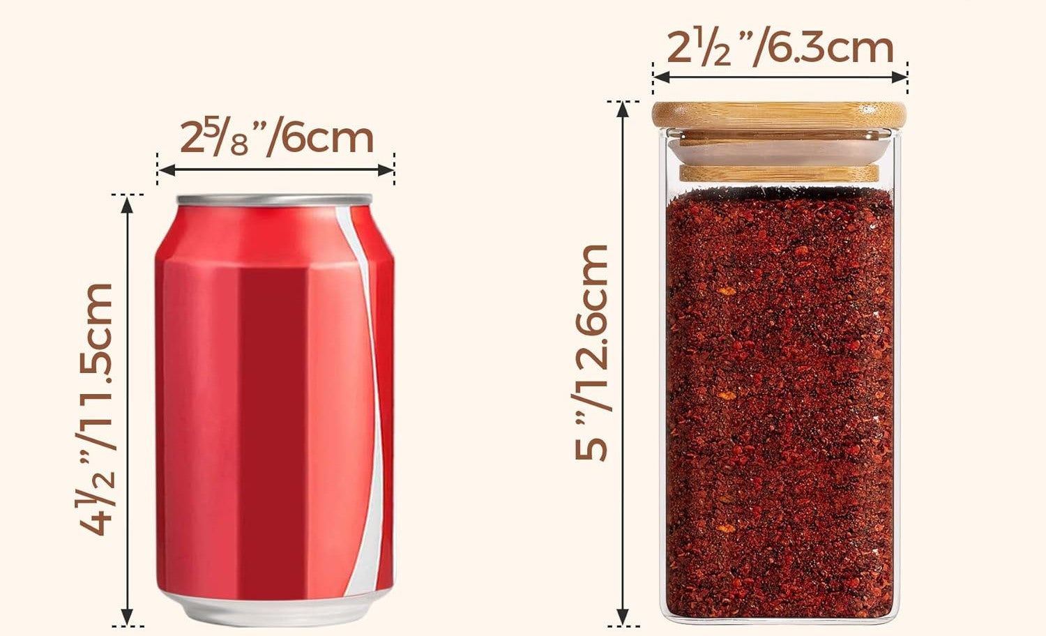 330 ML Borosilicate Clear glass allows the contents of the jar easily see without removing the lid. You can open or cover the lid in a short time. Storing These glass food storage jars Organizer rack and Container set will make your home tidier. Perfect for storing and preserving a variety of ingredients including preserves, jams, chutneys, rice, sugar, flour, tea, coffee, spices, biscuits, etc. The transparent food storage jars are made of high-quality borosilicate glass, which is lighter and more heat resistant than ordinary glass jars, and can withstand temperatures from -20 degrees to 150 degrees. Is able to put it in the fridge and microwave, or even put it in the dishwasher to clean it. The kitchen storage containers use bamboo lids and all sealed with a rubber ring for a better airtight space to prevent the food from getting wet and insects gain longer freshness time and longer storage time. Crafted from glass with a bamboo lid, this jar is unique, durable, clear & scratch thermal shock resistant & stylish too. Use this jar with dry goods like beans, rice and pasta, keeping them fresh and looking presentable in your cabinets. The glass jars are conveniently dishwasher safe for easy clean up. Perfect for tea, pasta, dry Foods, spices, coffee, candy , powder, herbs, sugar and more. Wooden lid with silicone ring closes tightly, keeping food fresh and dry. Thickened borosilicate glass; BPA & Lead free. More durable than other glass.