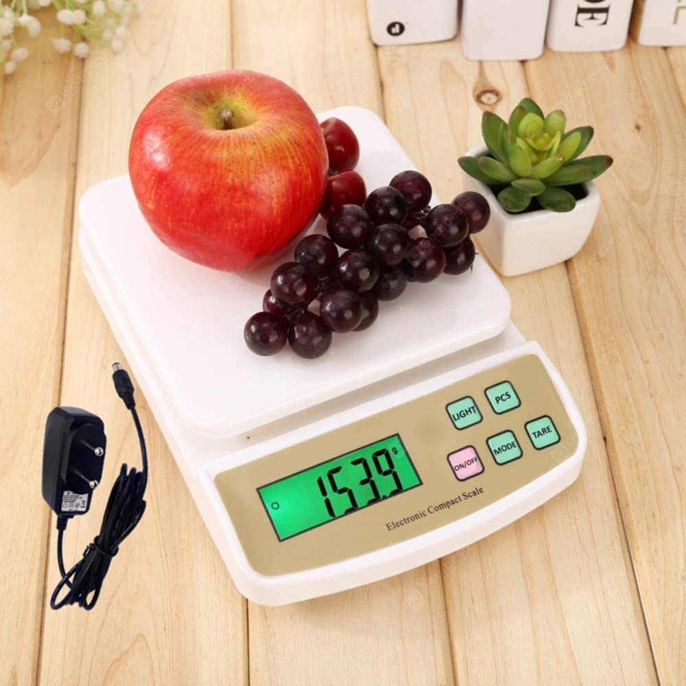 This is a professional scale designed for kitchen, mail room or even your workshop. It has a large washable tray for routine cleaning. Convenient tare button for tare calculation allows you to subtract the weight of plate or container, making it easy to achieve accurate readouts of ingredients. Backlit LCD display, green backlight, tare button for zero resetting, auto power off, weighing modes include- g, oz, kg, oz and piece counting. Can be operated by standard 2xAA alkaline battery (included) and electricity as well (Adapter is included with the scale).