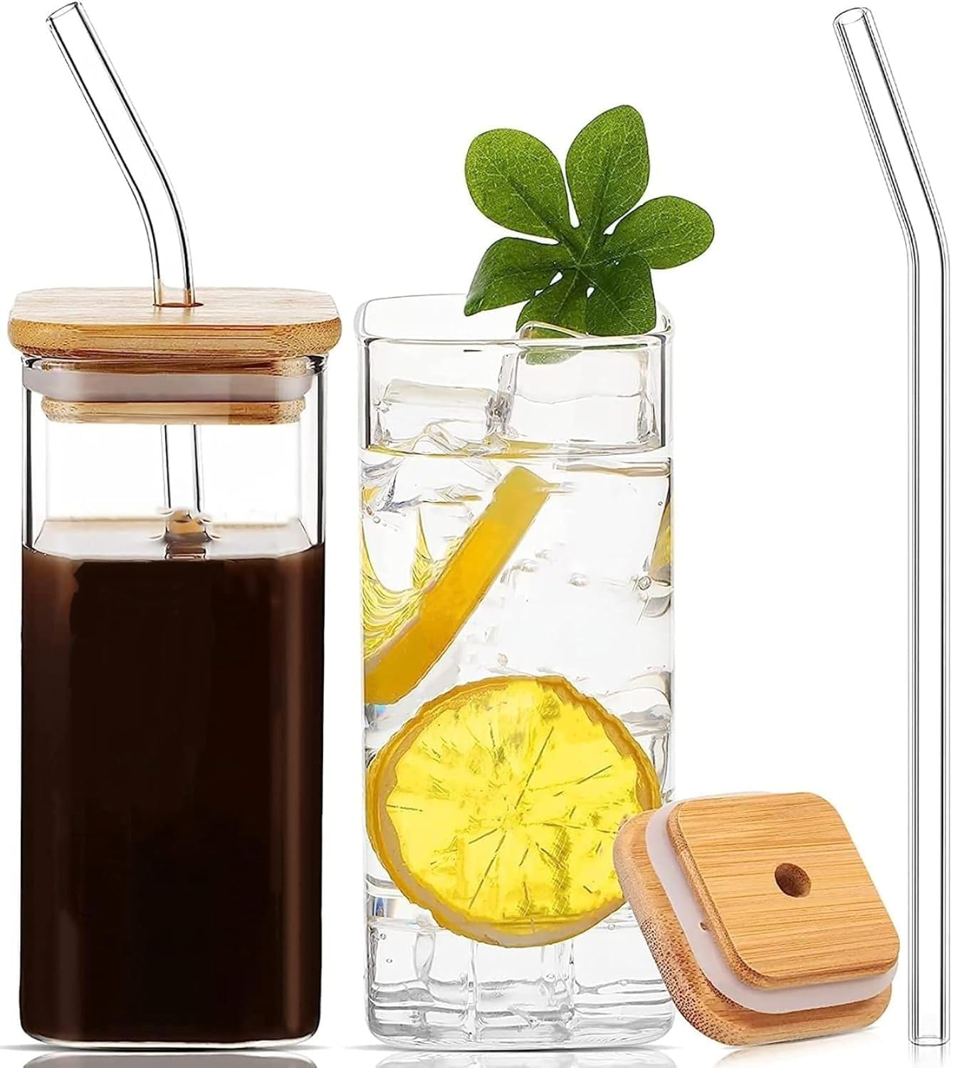Enjoy a pair of stylish and functional square glass mason jar mugs, perfect for various beverages. Each mug has a generous 410ml capacity, ideal for both hot and cold drinks. The included wooden lids provide an airtight seal, keeping your drinks fresh and preventing spills. Each mug comes with a glass straw, enhancing the sipping experience and reducing the need for disposable straws. These mugs are designed to handle a wide range of temperatures, making them suitable for both hot coffee and cold cocktails. High Quality Lead-free Glassware | Microwave Safe | Refrigerator Safe | Dishwasher Safe, Lightweight & Durable. This high-quality drinkware features reinforced rim, sturdy design and perfectly balanced proportions. Airtight wooden lid to securely seal the contents and maintain freshness. Glass straw included for convenient sipping. Beautiful Accessory for Coffee Mug ,Tea, Coffee, Iced Teas etc. Perfect Gift for all occasions. Perfect for home, coffee shop, restaurants and hotels.